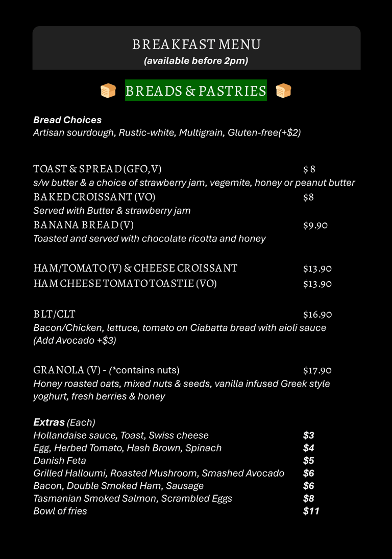 Breakfast, lunch, dinner & drinks — made with good produce and a lot of care.